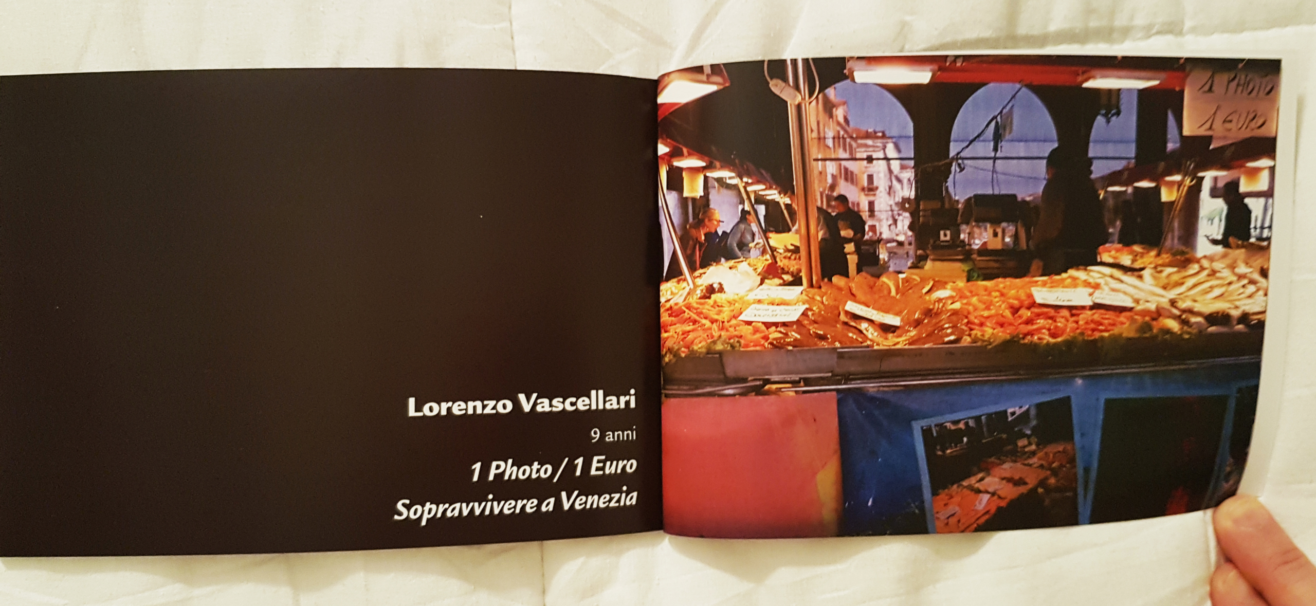 With great pleasure, once again this year we welcome and expose the photographs of the winners of the 4th photo competition dedicated to children and wanted by the teacher Gabriella Giaretta, president of the Campo Rialto Novo Committee and adjacencies. This year’s jury could count on the photographer and writer Philippe Apatie, the architect and a member of the Claudio Paggiarin committee and the journalist Vera Mantengoli. The competition, dedicated to children aged 8 to 16, aims to find, observe and investigate the most significant aspects of the historical and architectural signs of the Rialto Island to learn from History and create the Future. 27 people had participated in the “Lights and colors” competition, sending many photographs. The winner turned out to be Marta Stella Urbani, 12 years old with the photo “Luce del silenzio”. Third classified Carlotta Sfriso, aged 14 with “Alba a Rialto”. We are particularly proud to exhibit the runner-up, Lorenzo Vascellari, aged 9 (the youngest) with “1 Photo / 1 Euro” subtitled “Surviving Rialto”. The jury appreciated the framing of the fish counter with a sense of depth thanks to the perfectly balanced escape lines, and the subtle irony perfectly inserted in the upper right corner with the request for money for each shot. Lorenzo said: “Dad I waited for the fishmonger to turn!”.